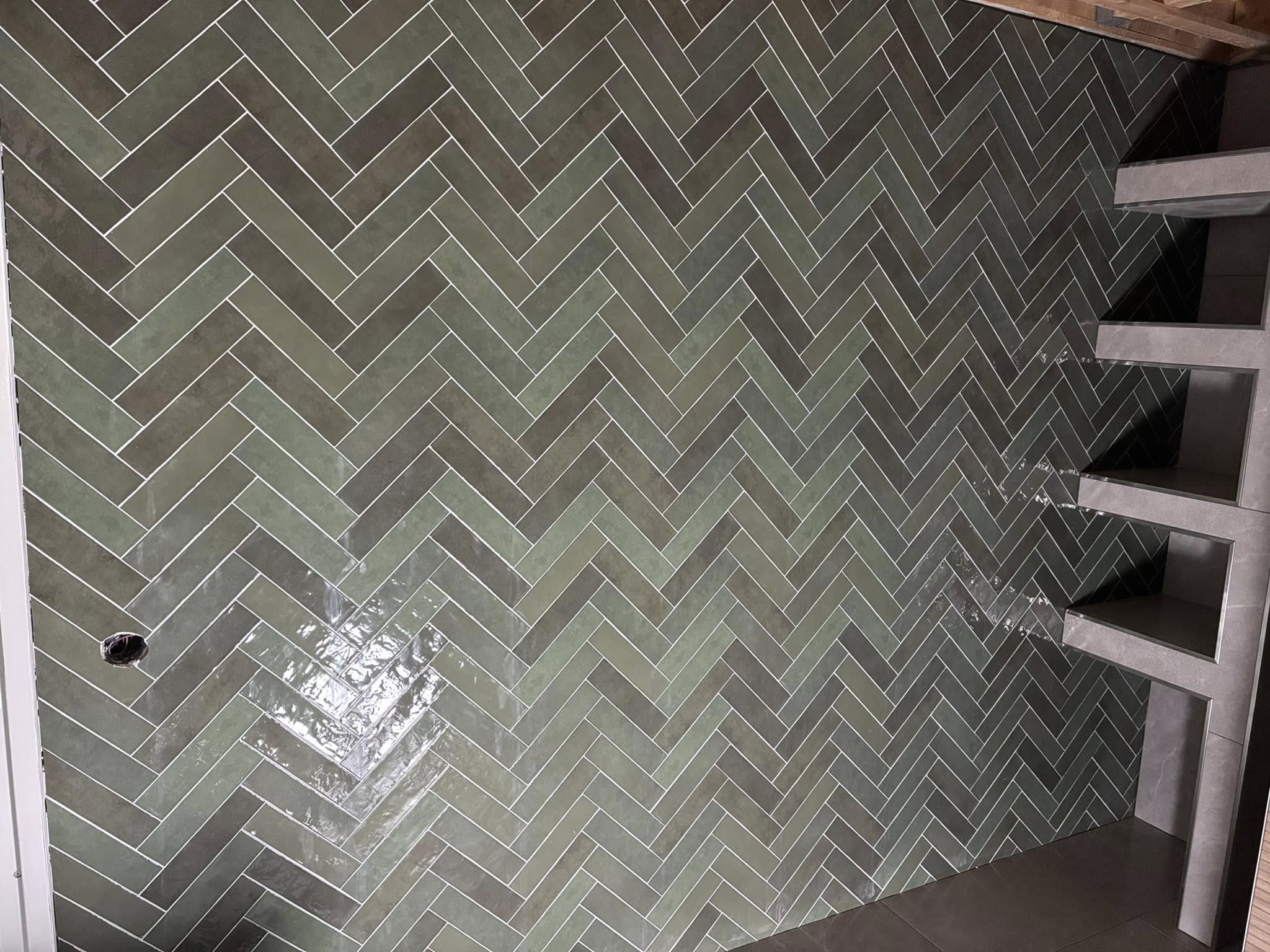Tegels hoeven niet recht boven elkaar verwerkt te worden. Er zijn meerdere patronen mogelijk. Een voorbeeld is een wand of vloer met visgraat, momenteel heel populair!